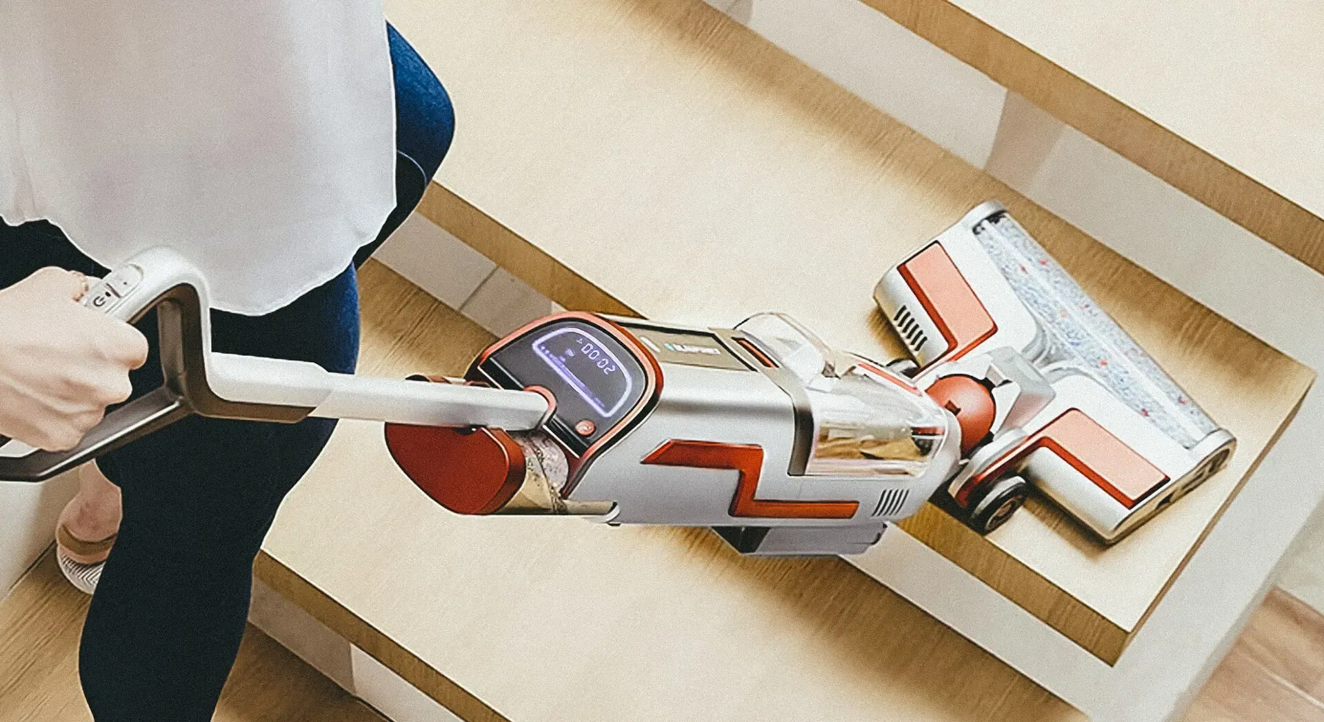 When it comes to wet cleaning, the iClean 1.0 steps up to the challenge and shows its strength, powered by a dual motor with a speed of 28,000 RPM. Switching from vacuum to mop mode is fairly straightforward, using the button on the handle to spray extra water on tougher stains; it tackles liquid spills well enough. In our tests, when wine is spilt on a hardwood floor, the iClean 1.0’s mopping feature helps reduce the stain, although it might not eliminate it with one pass. A second or third go might be necessary for more stubborn stains, but it does the job in the end.
