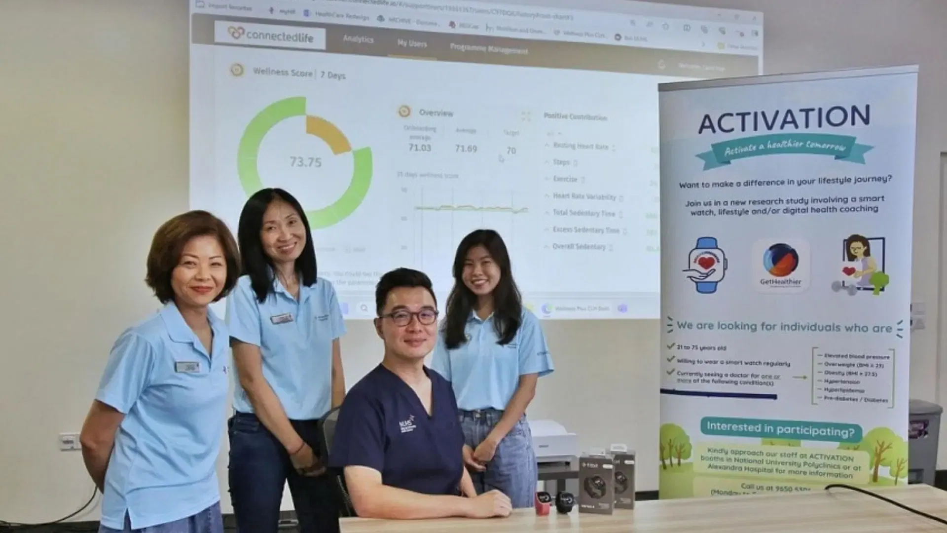 - Smartwatch with full support, including a dashboard and digital health coach – In this group, participants will have access to a dashboard, the nudging system, and support from a digital health coach. AH has hired three coaches to guide these participants using the ConnectedLife app, which tracks health markers and provides personalised support.