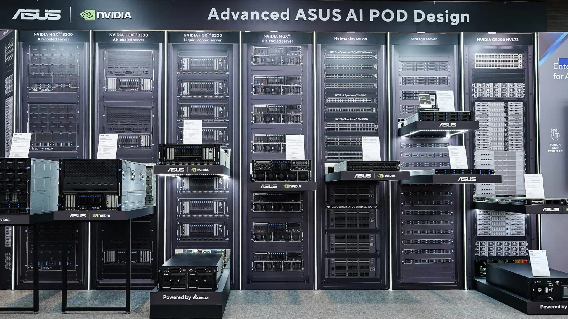 ASUS’s AI POD design incorporates NVIDIA’s latest hardware to support scalable deployments of large AI models. The solution features NVIDIA GB200 and GB300 NVL72 racks, which support both liquid-cooled and air-cooled options.