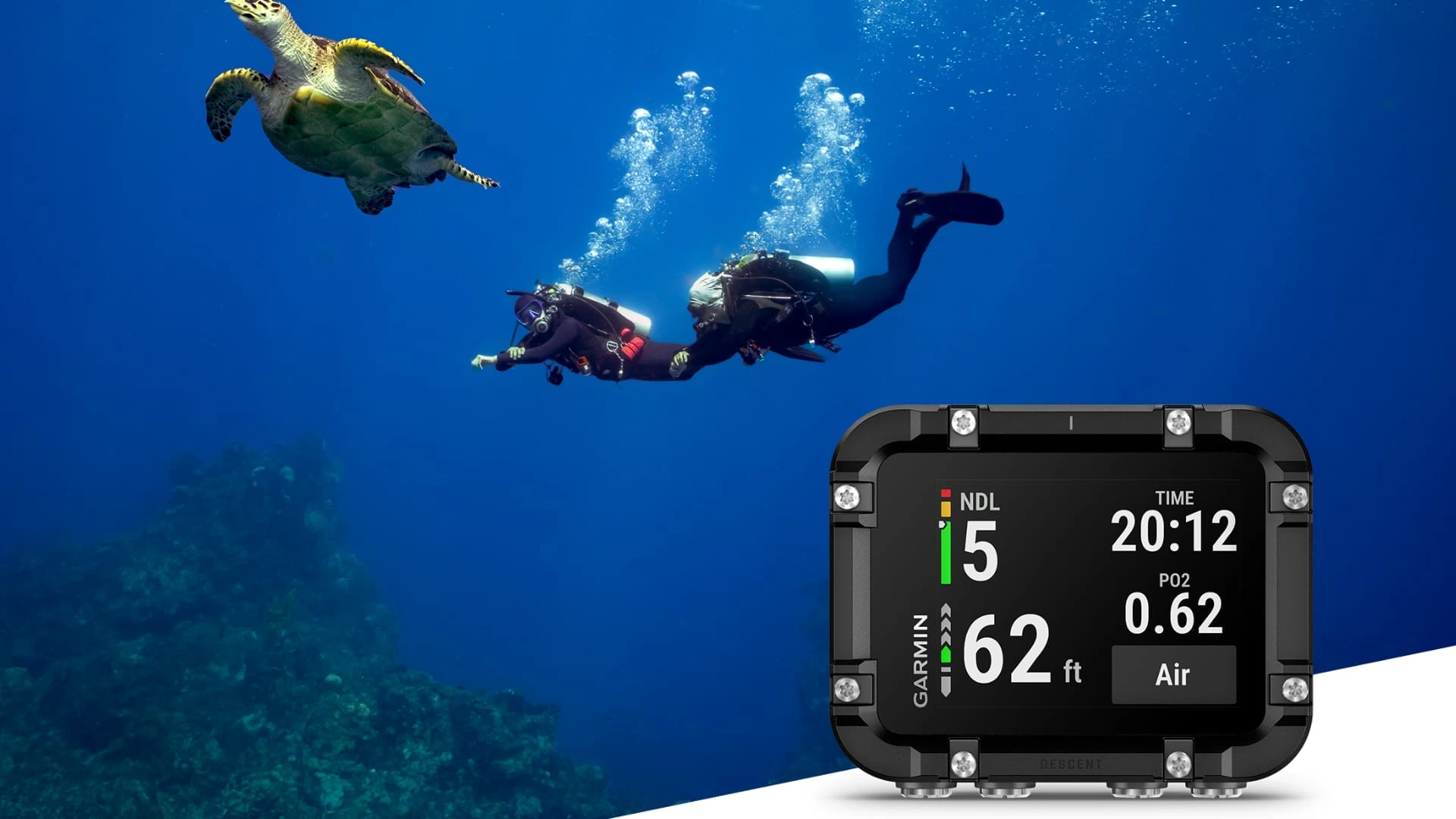 Divers can use audible and vibration alerts to stay aware of their depth and time, while a three-axis digital compass supports accurate underwater navigation. Surface GPS enables users to locate dive sites easily and review dive data through the Garmin Dive app after surfacing.