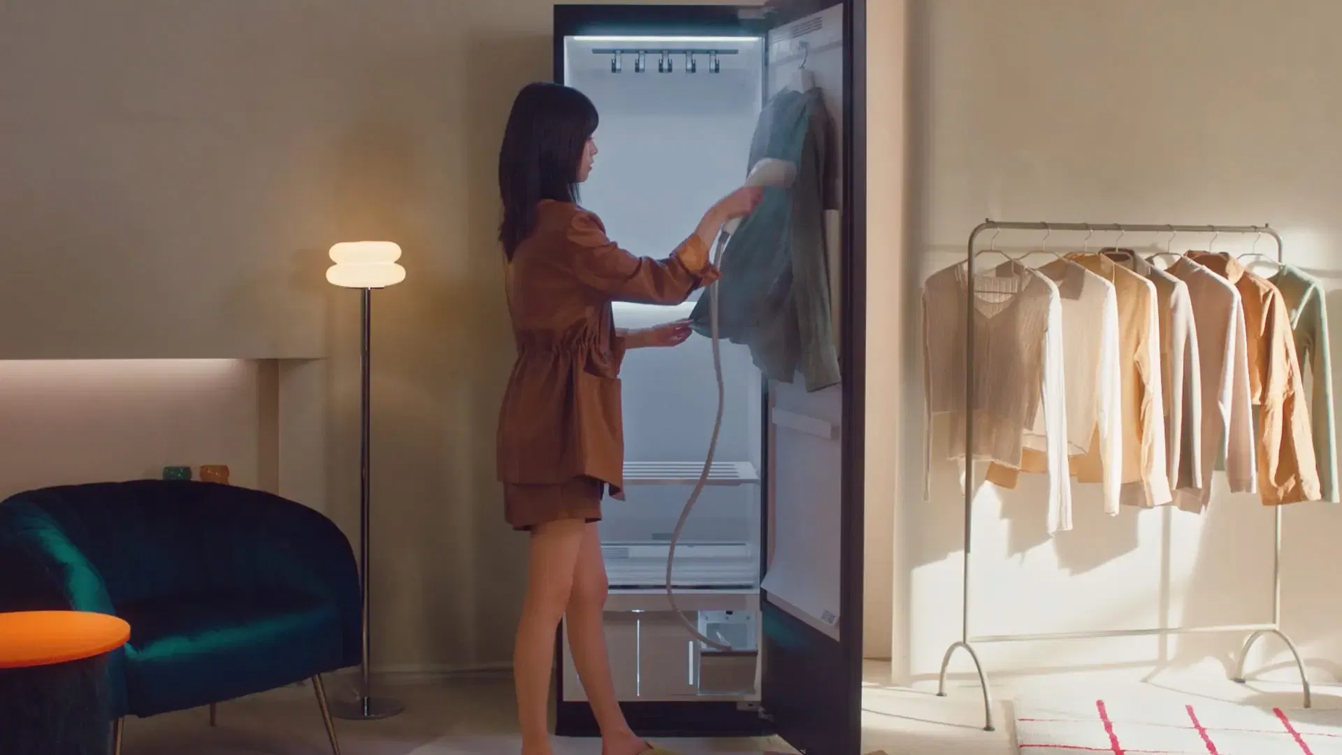 For convenient management, the new Styler’s time-saving Pants Press adopts an upgraded hanging structure that enables sharper, wrinkle-free creases. In addition, the new Styler has an intuitive-to-use LCD touchscreen that makes course selection quick and easy.