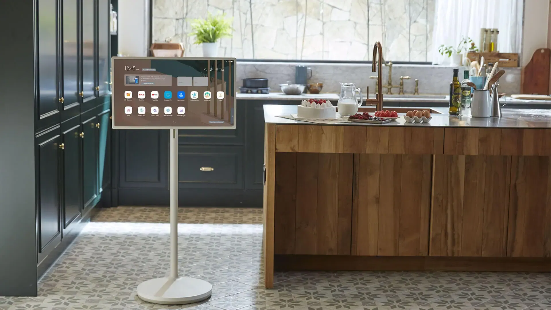 Featuring a rear cover clad in a pure beige textural fabric, the LG StanbyME complements a variety of interior décors and brings a warm yet sophisticated touch to any space. When it is not in use, the LG StanbyME can help set the mood by displaying beautiful artworks, images or a functional interface like a calendar and clock.